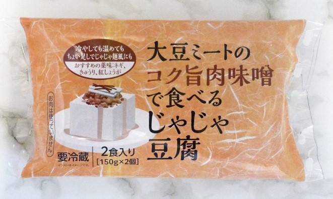 岩手県産大豆100%のおとうふと大豆ミートのじゃじゃみそ風肉味噌のセットです。赤味噌に干し椎茸や黒ゴマを加えてコク旨に仕上げた具材がたっぷりの肉味噌です。セットの絹ごし豆腐にそのままかけてやっことして。